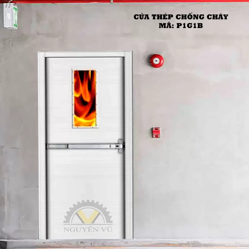 Cửa thép chống cháy P1G1B do Nguyễn Vũ Door sản xuất sử dụng vật liệu bền bỉ đạt tiêu chuẩn PCCC, cách âm cách nhiệt rất tốt, giúp bảo vệ tài sản và công trình. [button size="medium" style="primary" text="094 406 3030" link="tel:0944063030" target=""] [button size="medium" style="primary" text="091 6070 141" link="tel:0916070141" target=""]Shipping/Vận chuyển