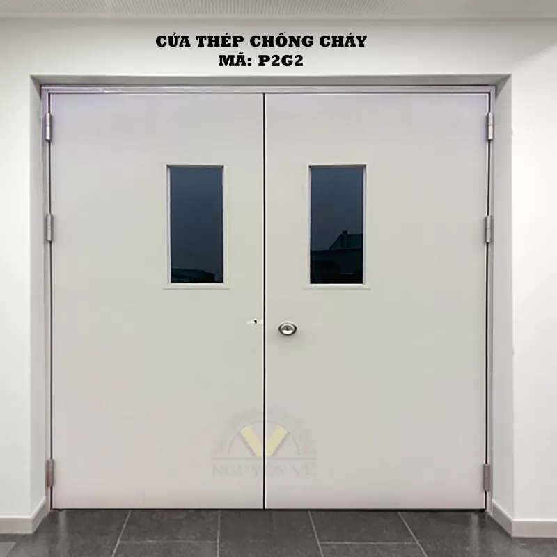 Cửa thép chống cháy P2G2 là loại cửa chống cháy 2 cánh do Nguyễn Vũ Door sản xuất đạt tiêu chuẩn an toàn PCCC, cách âm cách nhiệt rất tốt, giúp bảo vệ tài sản và công trình. [button size="medium" style="primary" text="094 406 3030" link="tel:0944063030" target=""] [button size="medium" style="primary" text="091 6070 141" link="tel:0916070141" target=""]Shipping/Vận chuyển