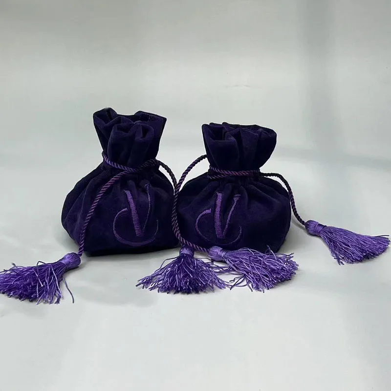 Custom Logo Printed Round Bottom Velvet Storage Bag Luxury Soft Gift Packing Drawstring Velvet Pouch