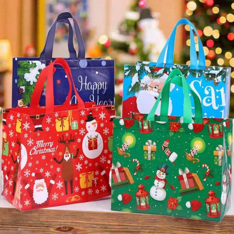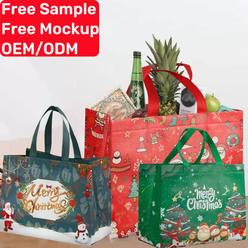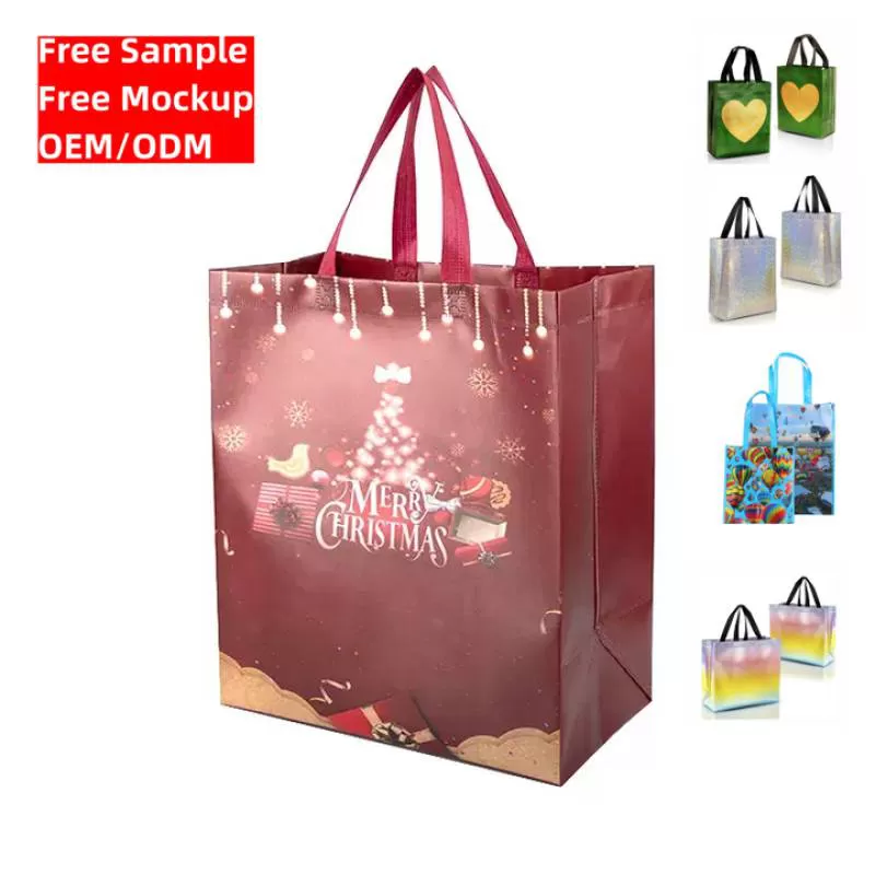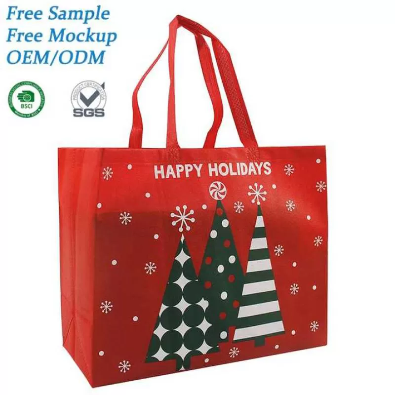 Custom logo Eco-friendly Christmas Party Gift Cartoon Tree Handheld Red Cheap Shopping Non Woven Bag