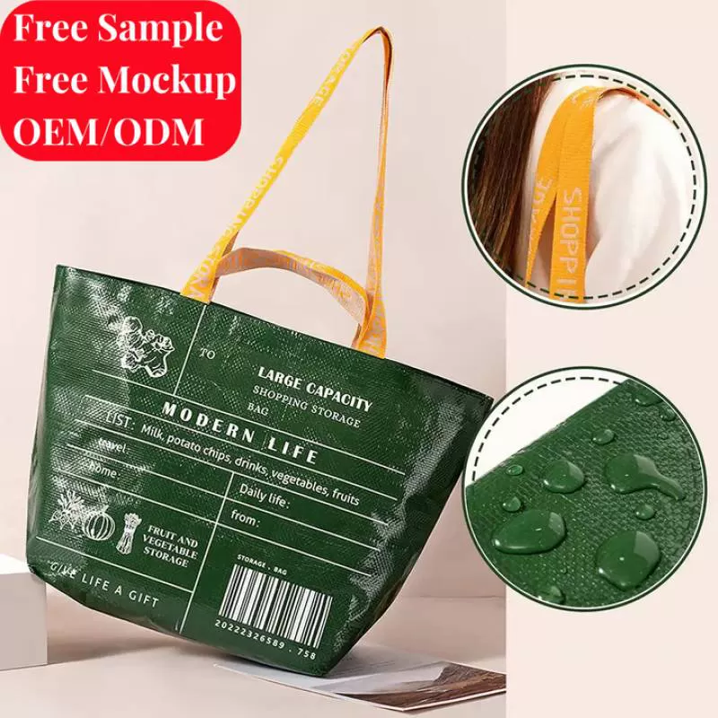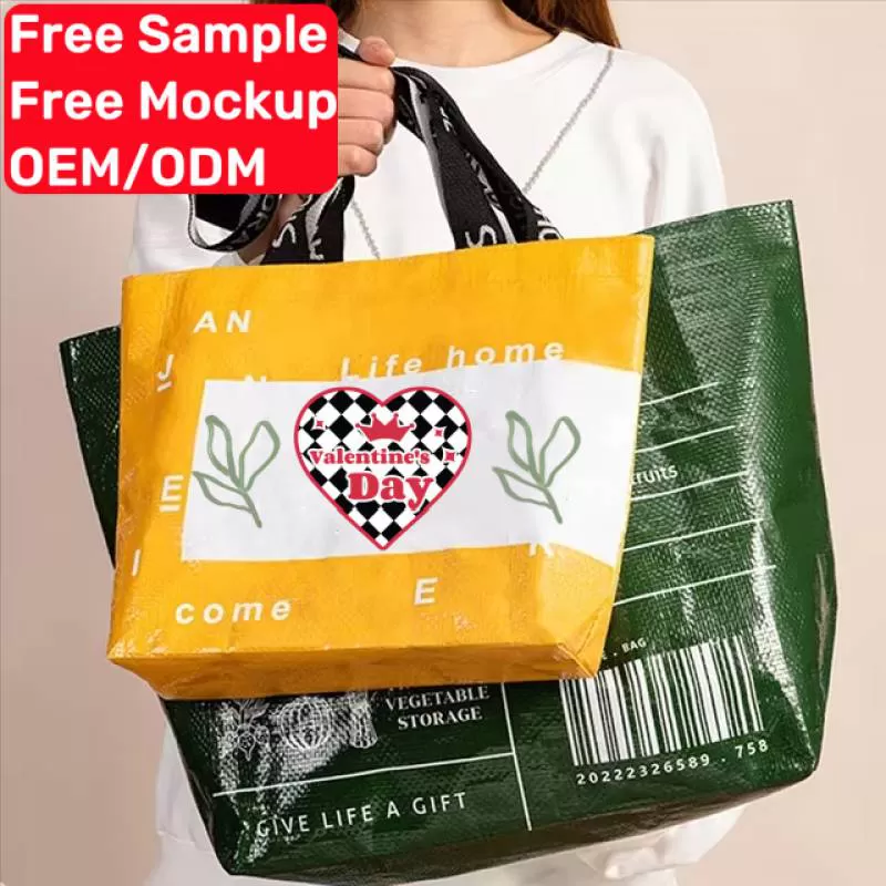 Custom Logo Waterproof Beach Promotional Hand Recycled Pp Plastics Woven Shopping Bags