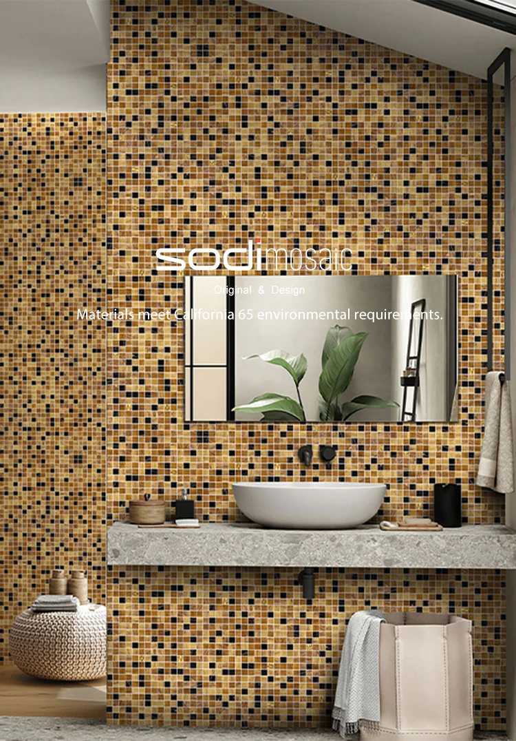 Customized Hand Made Glass Mural 24k Gold Mosaic Tile for Hotel Shower Bathroom Cafe Project