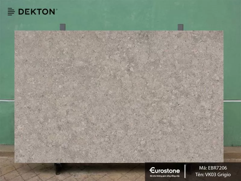 Đá Dekton VK03 Grigio v ới tông màu xám mang sắc thái ấm áp, VK03 Grigio kết hợp hoàn hảo với các tông màu kem, gỗ và nâu sẫm. VK03 Grigio lấy cảm hứng từ Grigio Alpi,...Shipping/Vận chuyển
