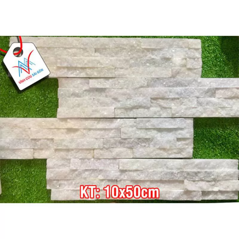 Đá ghép trắng muối là đá chẻ tự nhiên được cắt thành từng que nhỏ, sau đó ghép lại với nhau thành từng viên lớn theo quy cách 10x50 cm.Shipping/Vận chuyển
