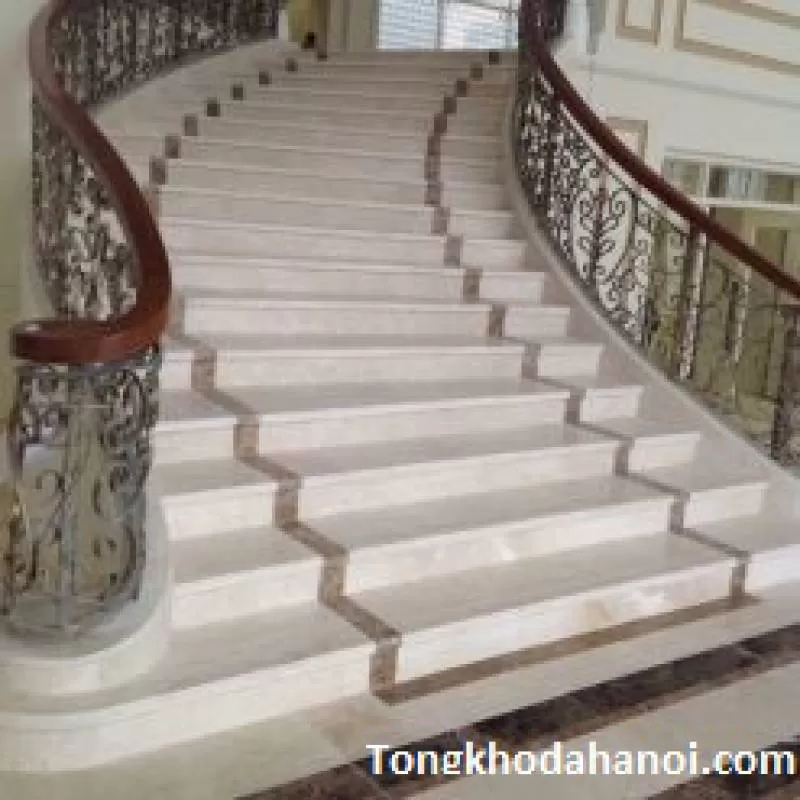 Đá ốp cầu thang màu trắng