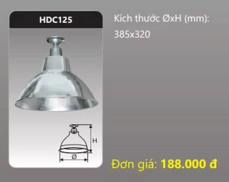 Đèn chóa công nghiệp HDC125 Kích thước ØxH (mm): 385 x 320