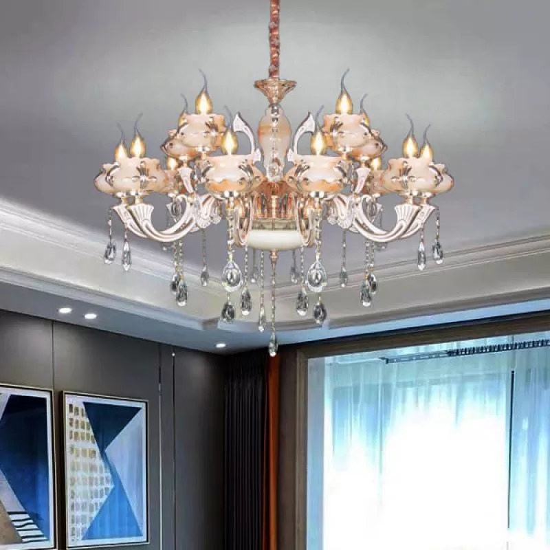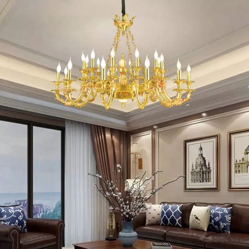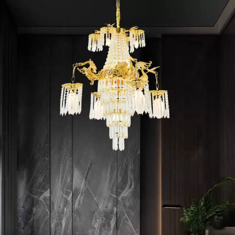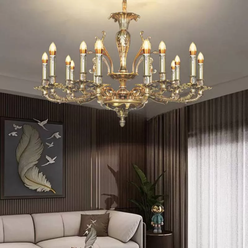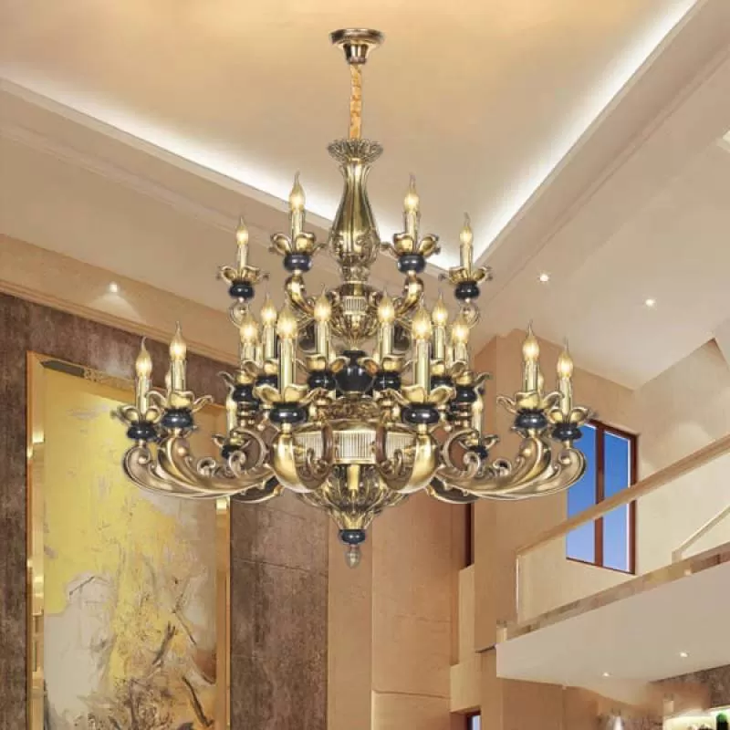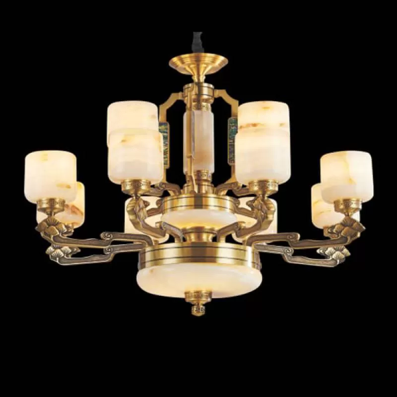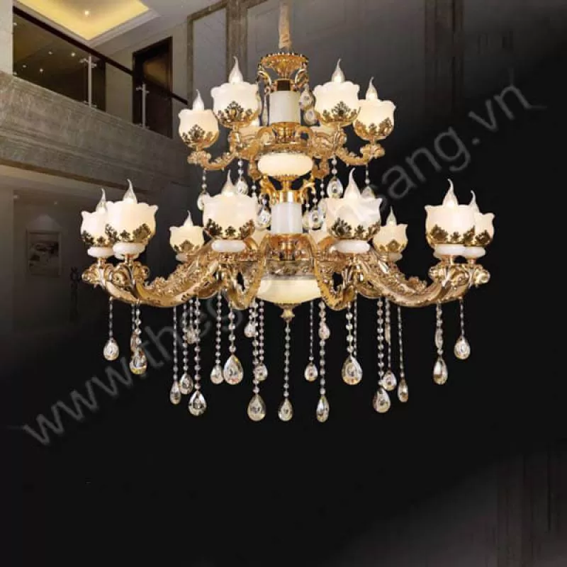 Đèn chùm đồng cổ điển chao đá đại sảnh 24 tay D1360mm HP-CD1129/12+8+4