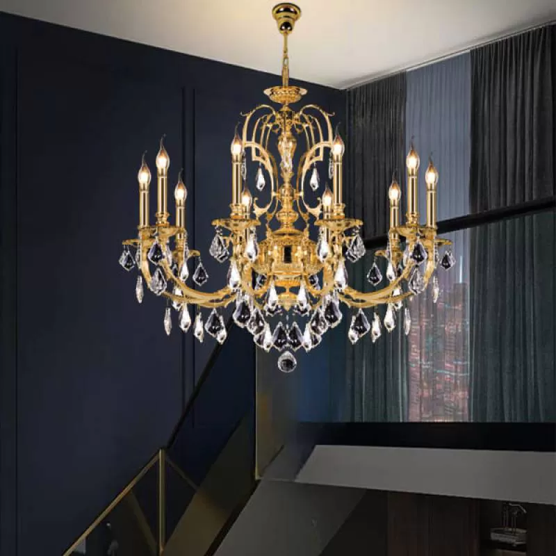 Đèn chùm đồng cổ điển chao đá đại sảnh 24 tay D1360mm HP-CD1129/12+8+4 giá rẻ 30%, chất lượng cao cấp, đẹp sang trọng, giao hàng trên toàn quốc