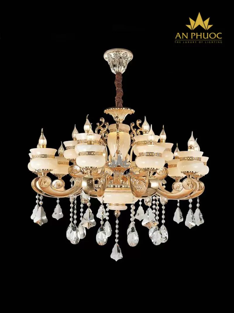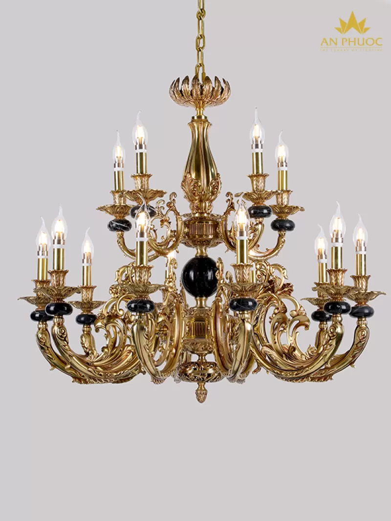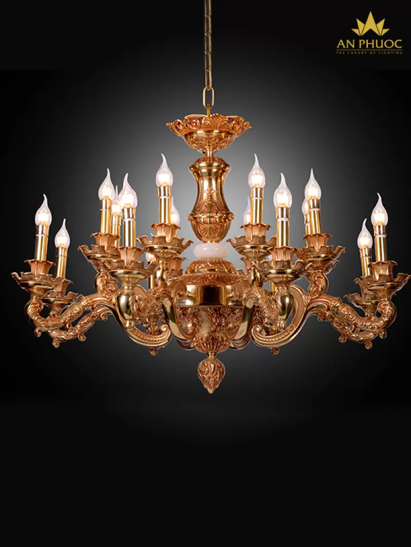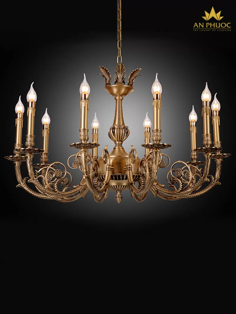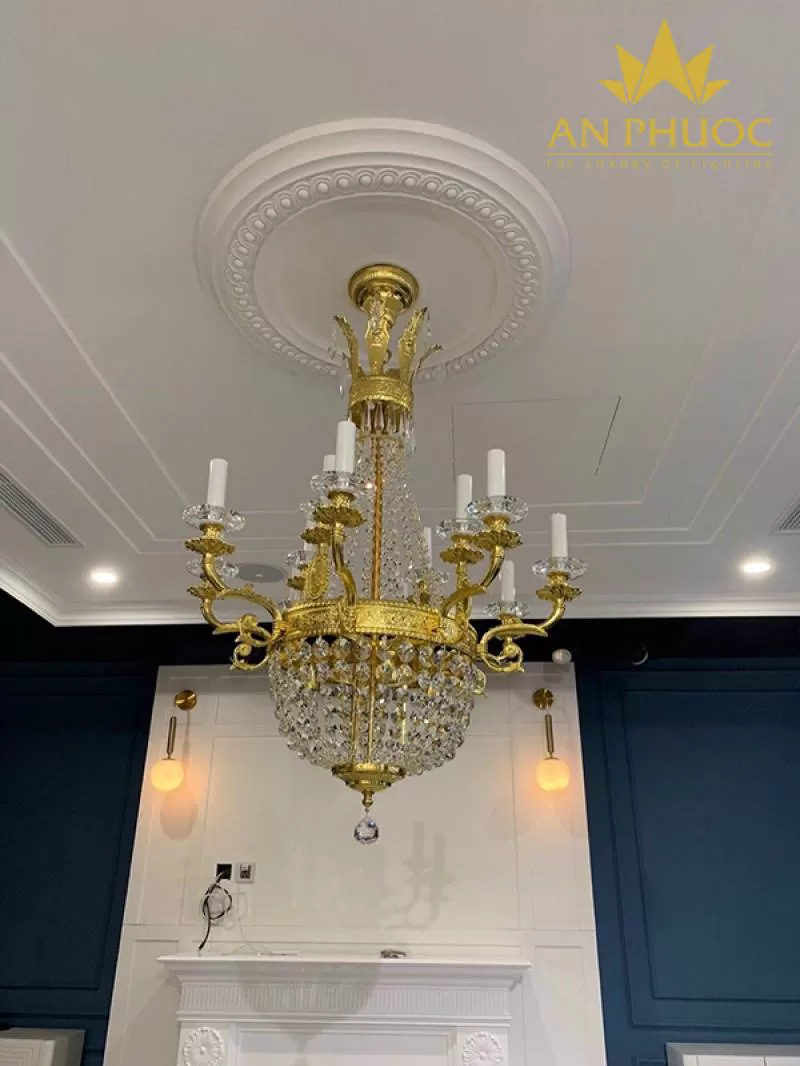 Đèn chùm đồng mạ vàng 24K 99805-10+5 - Đèn An Phước