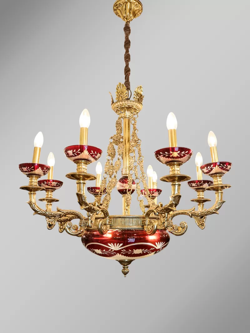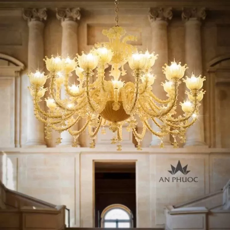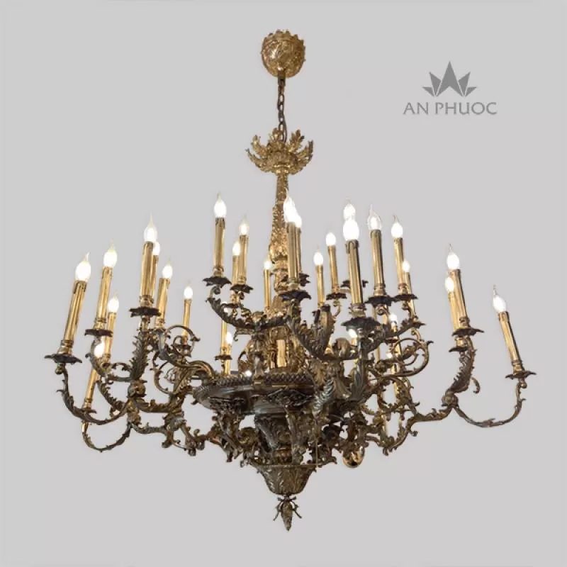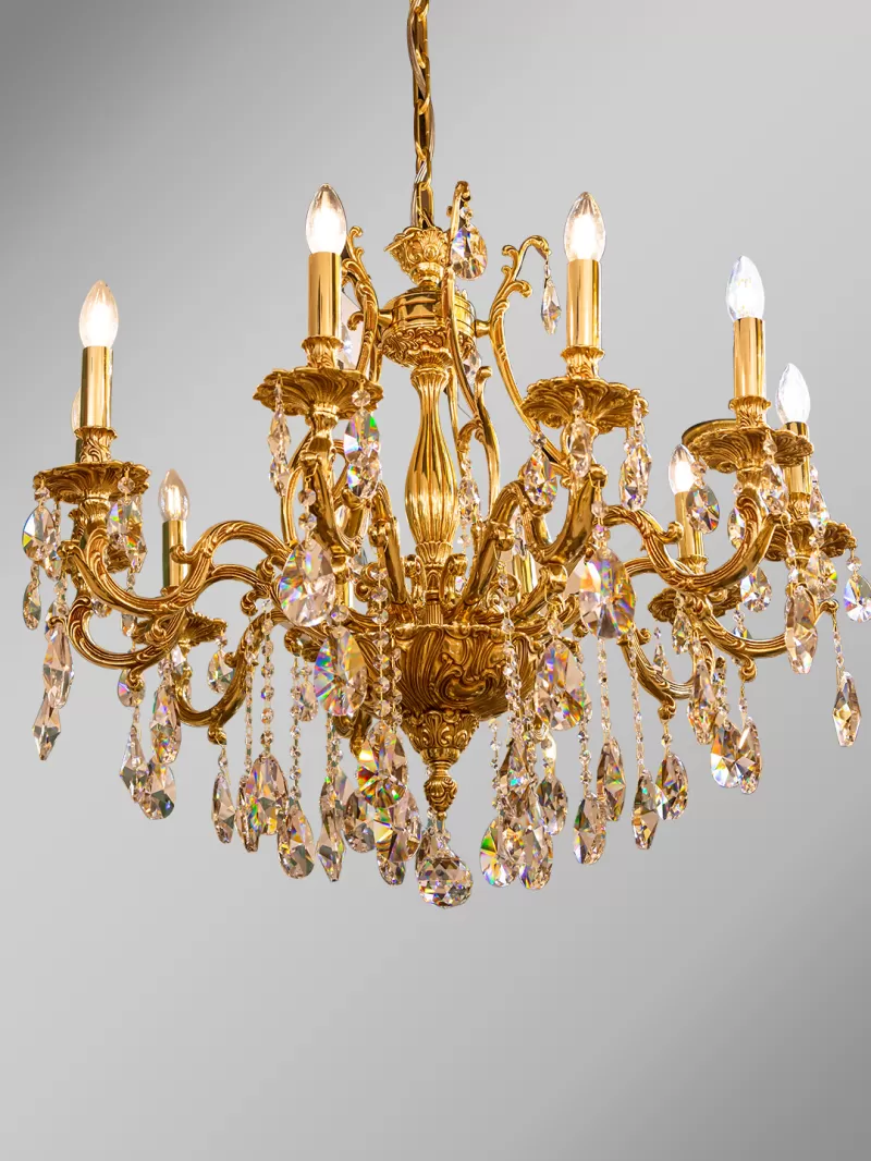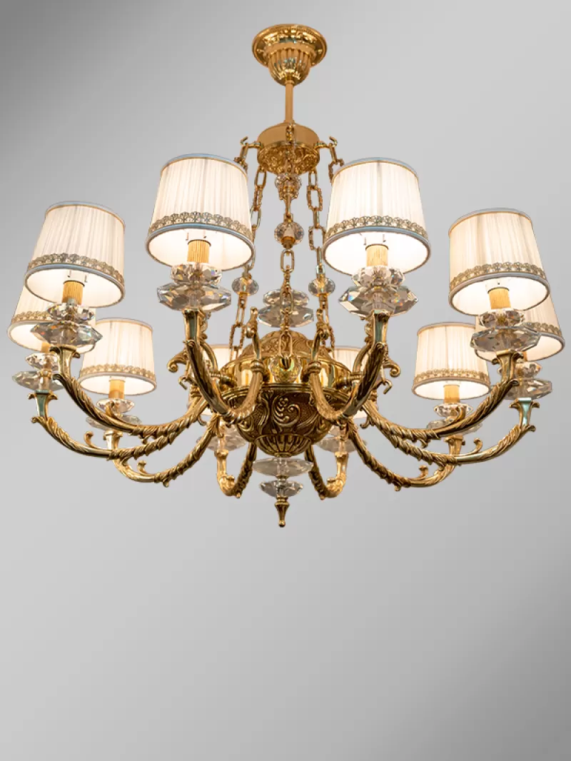 Đèn chùm đồng mạ vàng 24K 99805-10+5 - Đèn An Phước