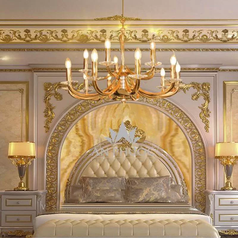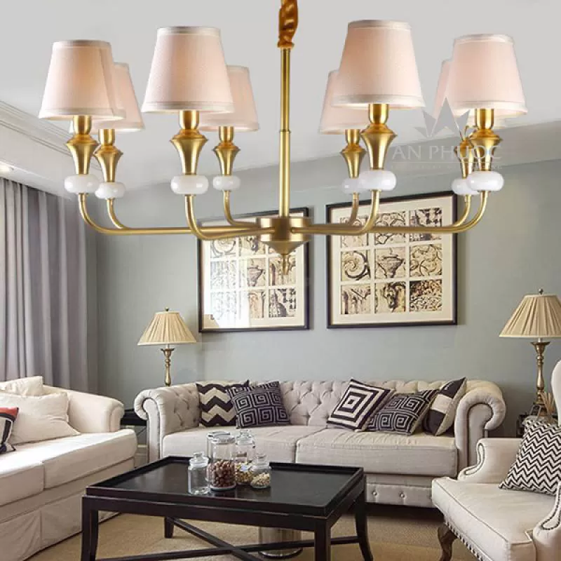 Đèn chùm tân cổ điển đồng mạ vàng 24K sang trọng đẳng cấp mã số 99805-10+5 có mặt tại đèn An Phước giúp không gian trở nên "chất chơi".