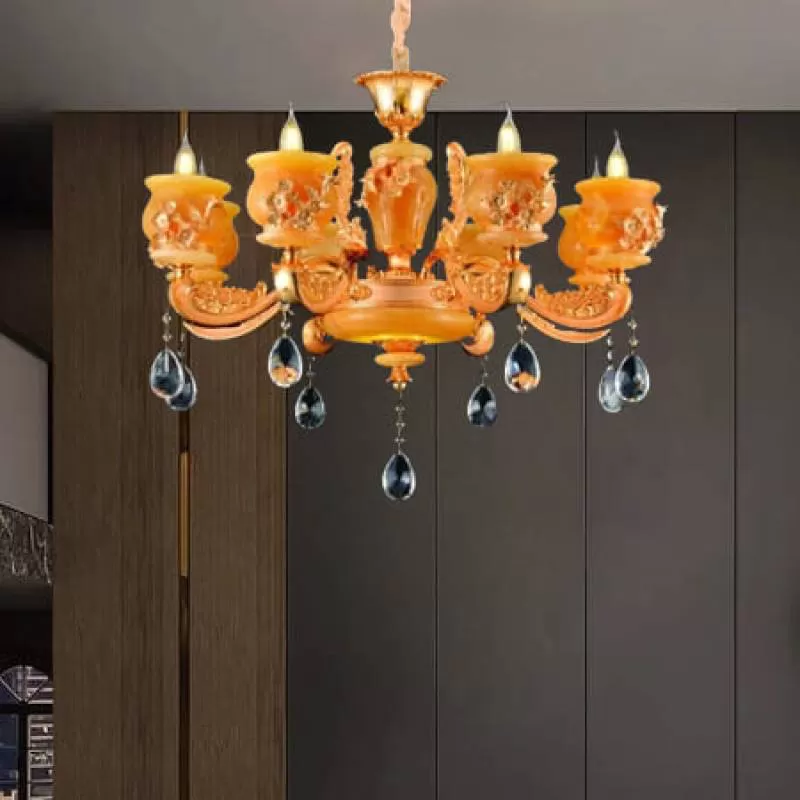 Đèn chùm nến mạ vàng chao đá thiên nhiên đẹp 8 tay D750mm EC-C2067/8