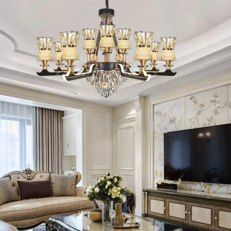 Đèn chùm nến mạ vàng chao đá thiên nhiên đẹp 8 tay D750mm EC-C2067/8 giá rẻ 30%, chất lượng cao cấp, đẹp sang trọng, giao hàng trên toàn quốc