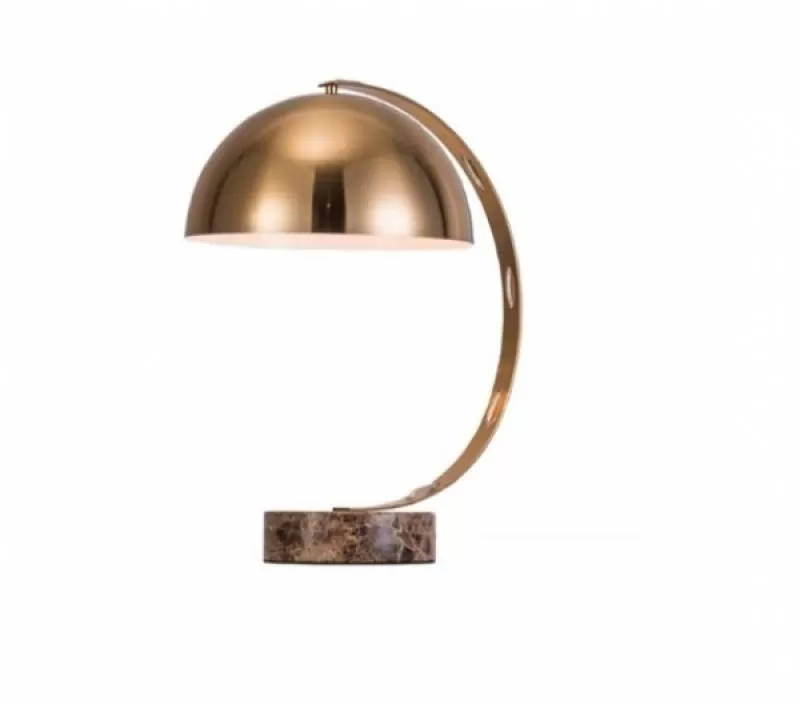 Đế kim loại phủ sơn cao cấp vân đá nâu, chân kim loại cong tròn, chụp tròn vàng đồng hội tụ ánh sáng
