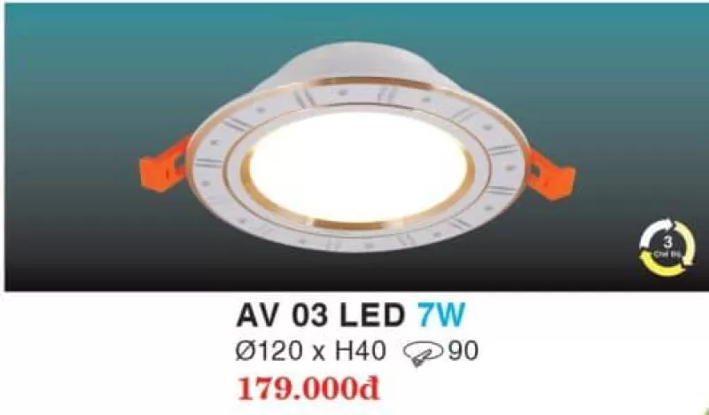Đèn downlight âm trần AB 03 led 7W Thương Hiệu: Hufa, Kich Thước: Ø120x xH40, Đèn 3 chế độ, Bảo Hành : 24 tháng. chất lượng cao