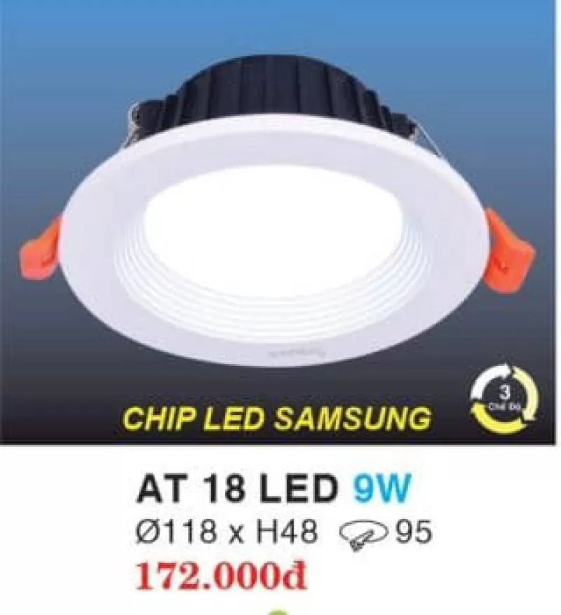 Đèn downlight âm trần AT 18 led 9W Thương Hiệu: Hufa, Kich Thước: Ø118 x H48, Đèn 3 chế độ, Bảo Hành : 24 tháng.sang trọng hiện đại