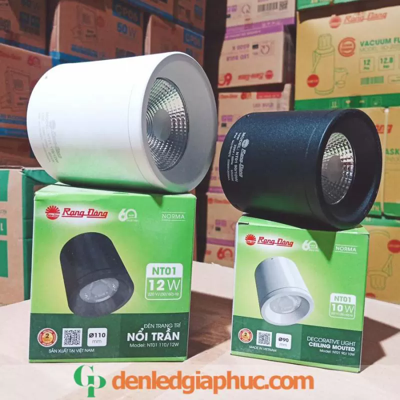 Đèn ống bơ rạng đông 12w D110 chính hãng. Đèn Downlight nổi trần trang trí NT01 110/12W. Đèn lon rạng đông 12w D110 giá rẻ