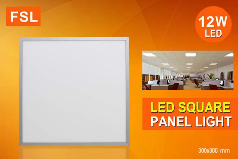 Đèn LED panel FSL FSP302-12W công suất 12W thương hiệu FSL thiết kế mặt hình chữ nhật kích thước 300x300mm siêu mỏng 8,8 mm chiếu sáng bằng chip LED Nationstar qua tấm kính mica mỏng phù mờ chống chói, ánh sáng ứng dụng công nghệ dẫn sáng trên tấm thủy tinh quang học theo nguyên lý phản xạ toàn phần
