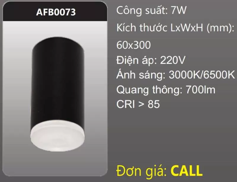 Đèn LED tròn tán quang gắn nổi trang trí AFB0073 Công suất: 7W Kích thước LxWxH (mm): 60 x 300 Điện áp: 220V Ánh sáng: 3000K/6500K Quang thông: 700lm CRI > 85 Xem thêm bảng giá Full: https://skyled.com.vn/bang-gia-den-duhal-moi-nhat/Shipping/Vận chuyển