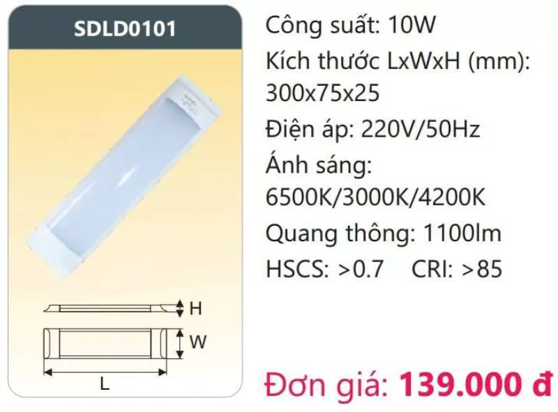 Đèn ốp trần LED đổi màu SDLD0101 Công suất: 10W Kích thước LxWxH (mm): 300 x 75 x 25 Điện áp: 220V/50Hz Ánh sáng: 6500K/3000K/4200K Quang thông: 1100lm HSCS: >0.7 CRI: >85 Xem thêm bảng giá Full: https://skyled.com.vn/bang-gia-den-duhal-moi-nhat/