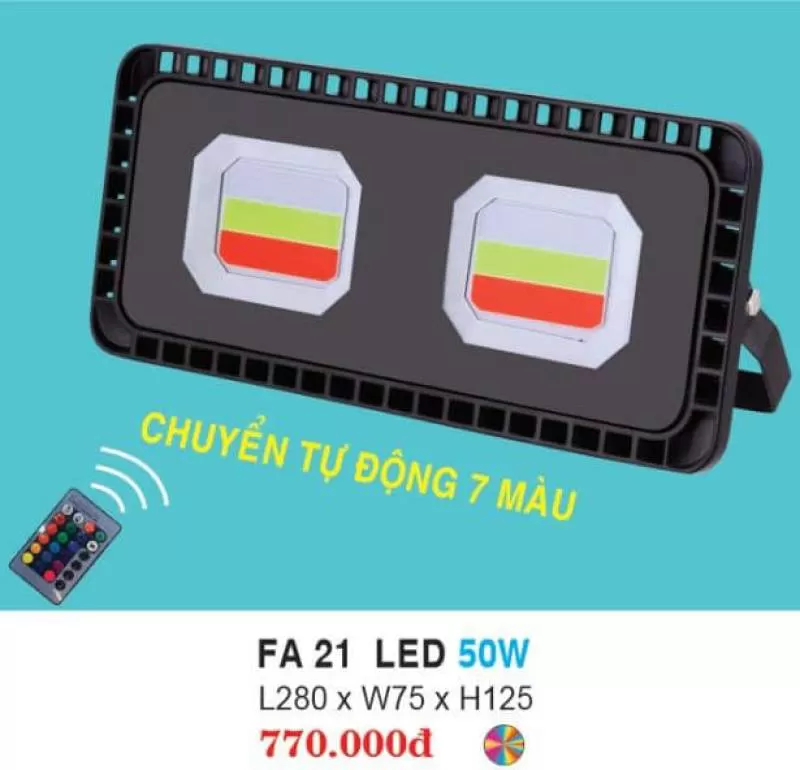Đèn pha led FA 21 LED 50W HUFA kích thước L280 x W75 x H125, chuyển tự động 7 màu, đa màu