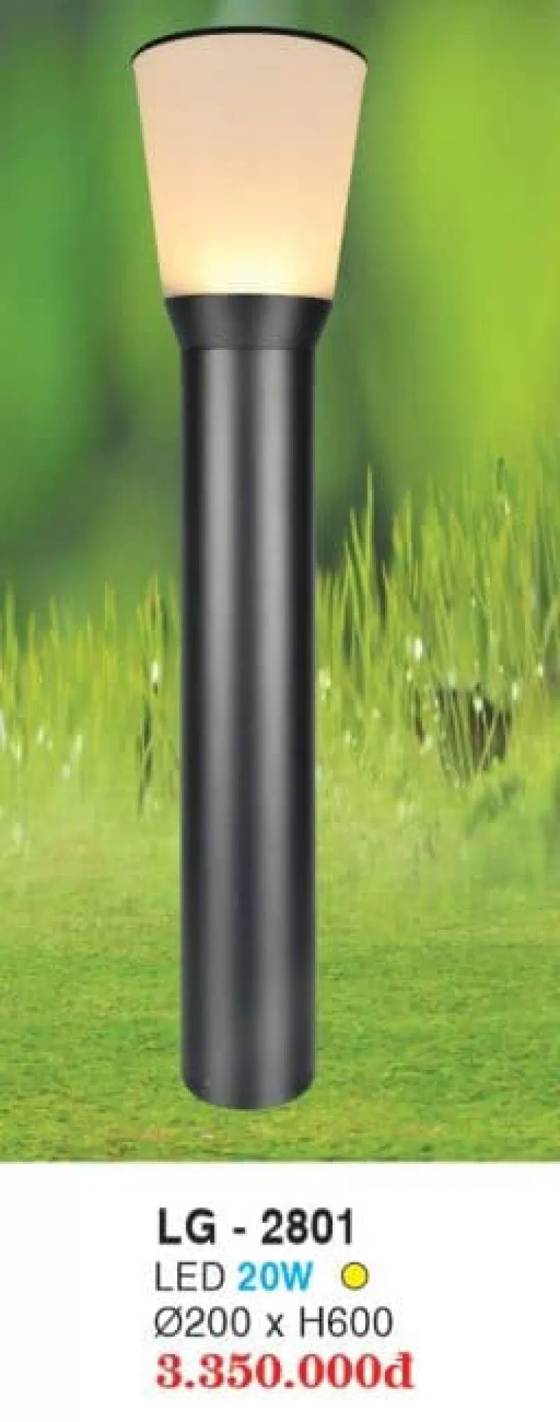 Đèn sân vườn LG-2801 10W Thương Hiệu: Hufa, Kích thước đèn: Ø200 x H600, Ánh sáng vàng, Bảo hành 12 tháng. sang trọng hiện đại.