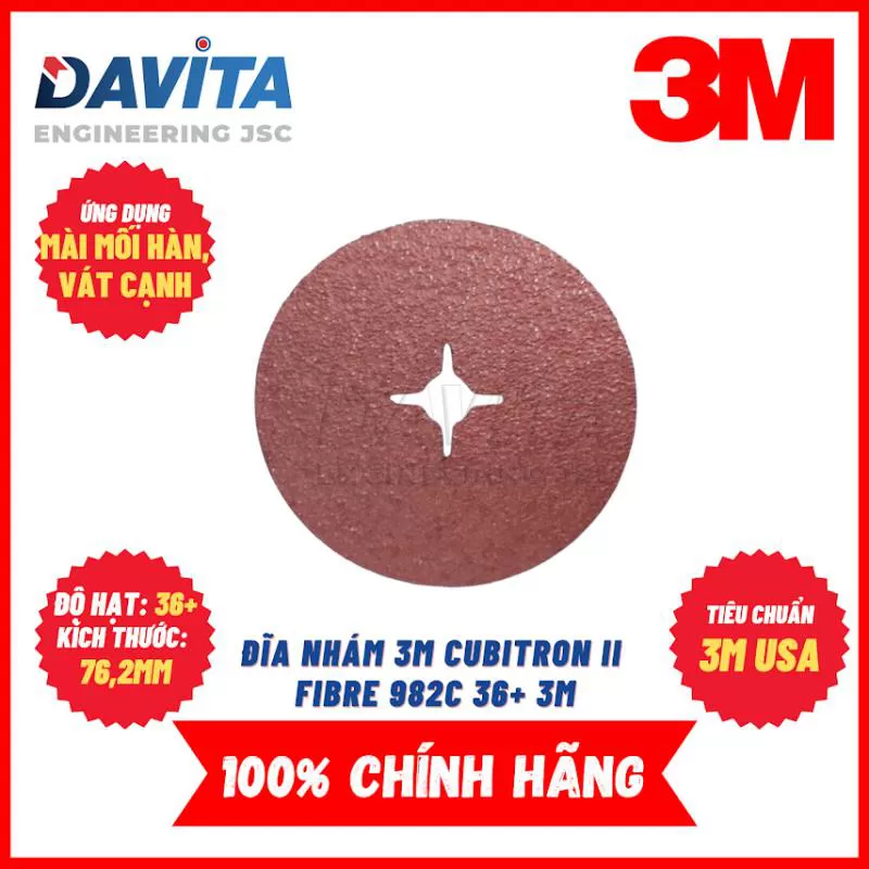 - Nhám đĩa 3M™ Cubitron™ II 982C hoạt động tốt dưới áp lực mài từ trung bình đến cao. Cấu tạo là các hạt nhám định hình được phủ lên mặt lưng fiber, cho nên mặc dù mài với áp lực mài thấp nhưng nhám đĩa 3M™ Cubitron™ II 982C vẫn mang lại độ bền và tốc độ cắt cao hơn các loại nhám đĩa khác.- Nhám đĩa 3M ™ Cubitron ™ II