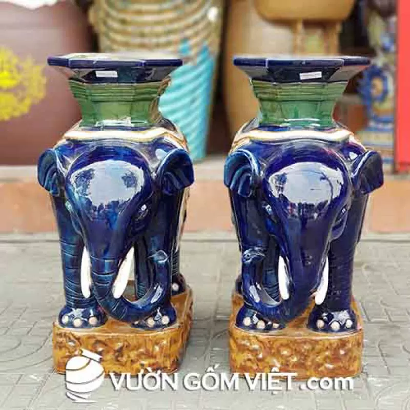 Đôn voi đứng bệ (xanh dương) thường được dùng để trưng bày trước cửa nhà. Phù hợp với nhiều phong cách trang trí nhà cửa khác nhau.