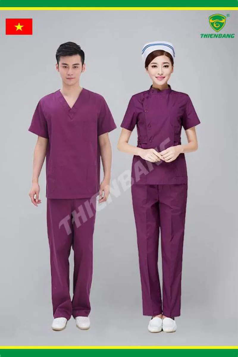 Loại bỏ những bộ mẫu trang phục y tế màu trắng đơn điệu từ xưa, bộ mẫu đồng phục y tế màu tím sẽ mang đến một làn gió mới cho đội ngũ cán bộ bệnh viện.Shipping/Vận chuyển