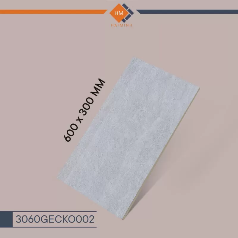 Mã: 3060GECKO002 Xương gạch: Porcelance Bề mặt: Mờ Kích thước: 30 x 60cm Màu sắc: Xám Hoa văn: Đá tảng
