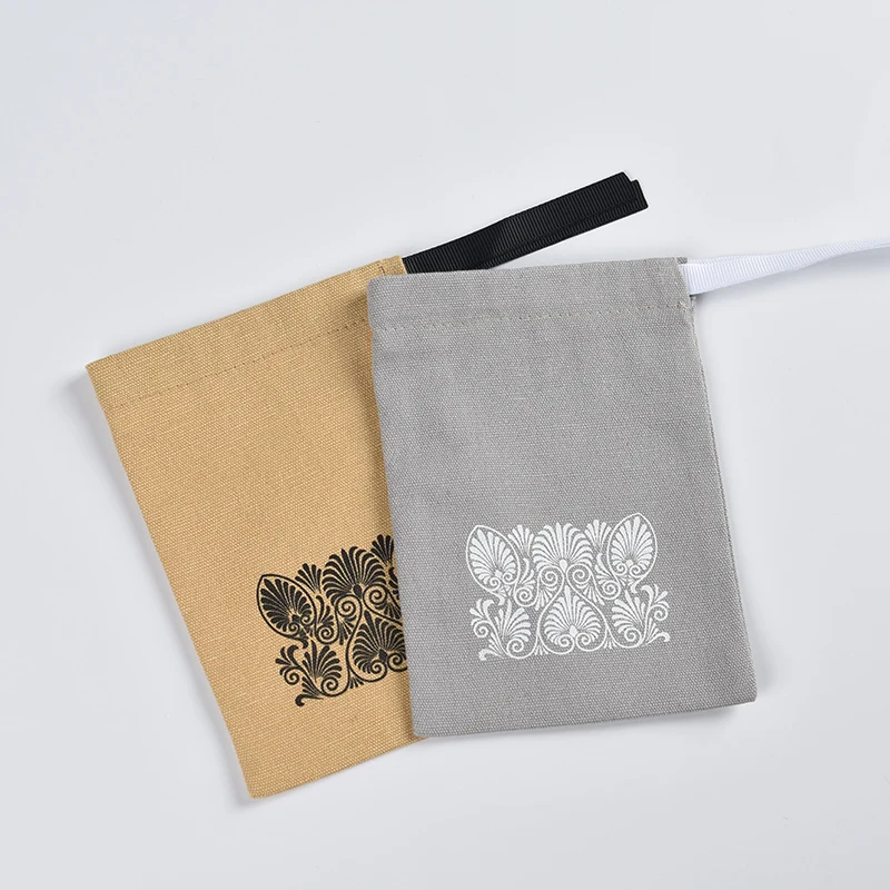 Custom eco-friendly organic cotton pouch promotional small canvas drawstring bag with logo printed