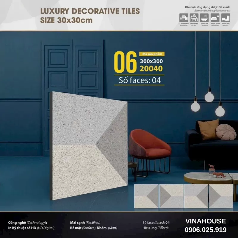Gạch 30x30 giá rẻ 20040 được dùng lát sàn toilet, lát sân thượng , lát tiểu cảnh, sân vườn..., Có thể sử dụng ốp trang trí bờ tường, trang trí mặt tiền,..