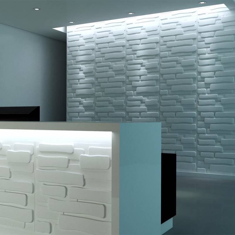 Gạch 3d ốp tường trang trí chống thấm màu trắng