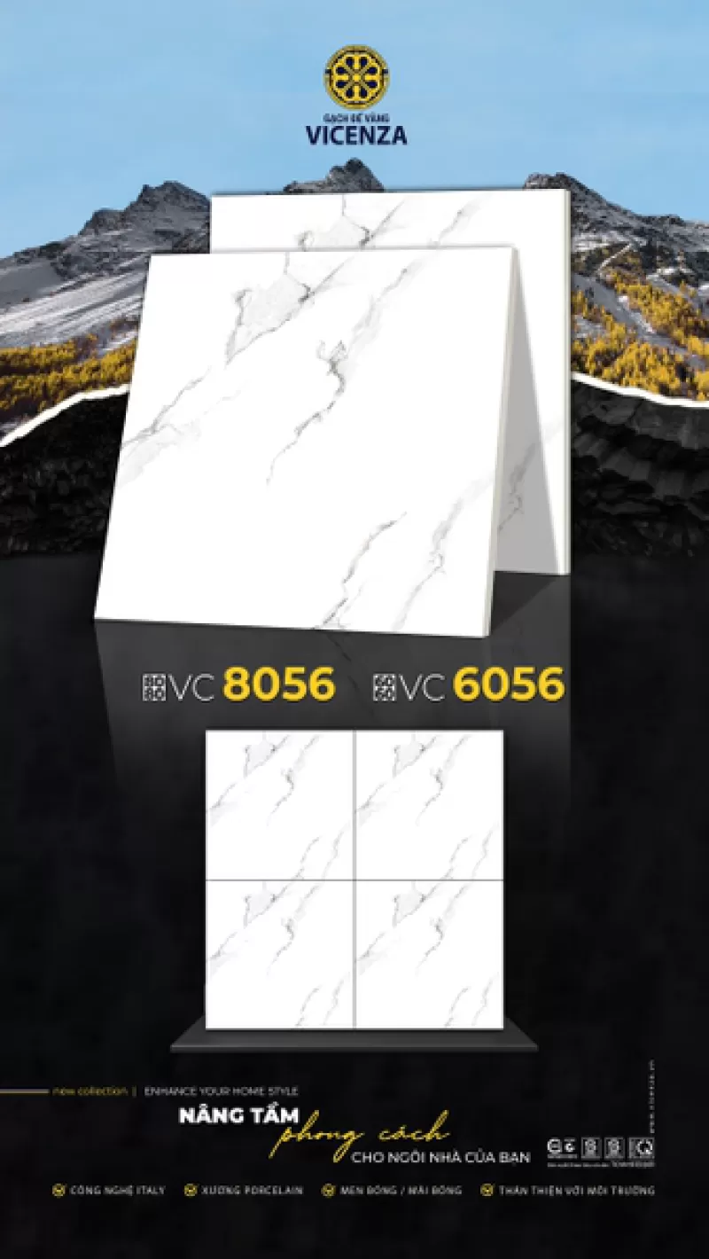 Gạch lát nền 80x80 cm 8056 Vicenza Mã: 8056 Bề mặt: Men bóng Chất liệu: Bán sứ Màu sắc: Trắng Gạch lát nền Granite Porcelain được sản xuất trên dây truyền hiện đại tại nhà máy VICENZA - với 100% máy móc nhập khẩu từ các nước có nền công nghiệp sản xuất gạch men hiện đại như Đức và Italia. Sản phẩm đáp ứng được các yêu