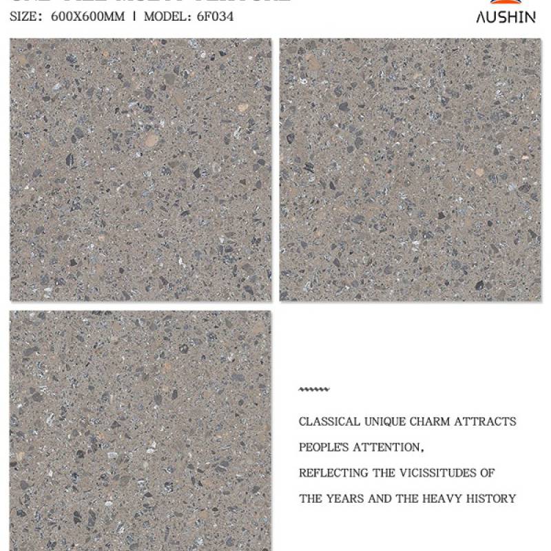Gạch lát nền hạt Terrazzo 600x600mm 6F034 màu nâu