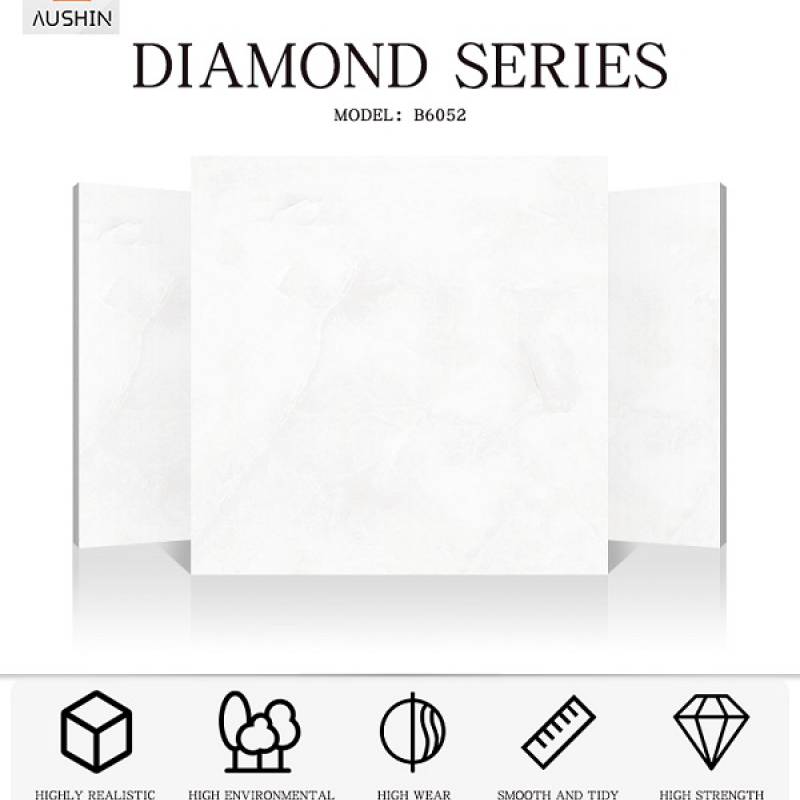 Gạch men bóng lát sàn hiện đại 600x600mm B6052 màu trắng