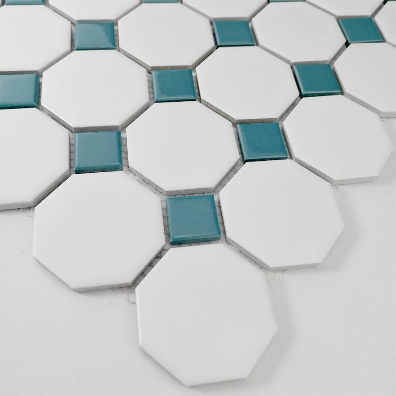 Gạch mosaic bát giác 300*300mm mix màu cam trắng mã BIG-002