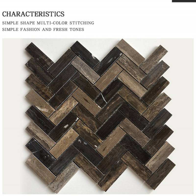Gạch mosaic đá xương cá 305x325mm màu gỗ
