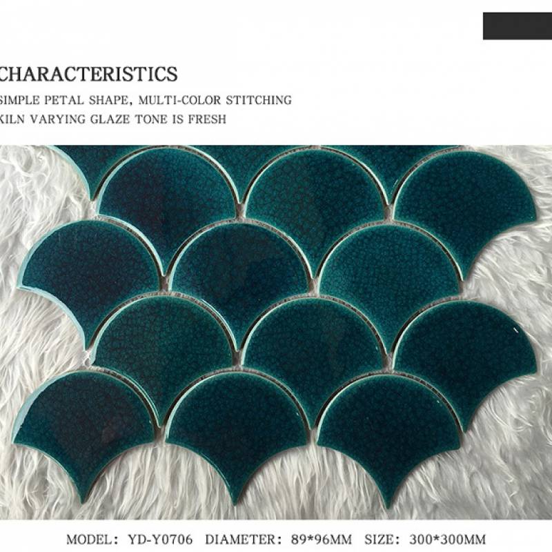 Gạch mosaic gốm hình vảy cá 300x300mm YD-Y0706 màu xanh lá đậm