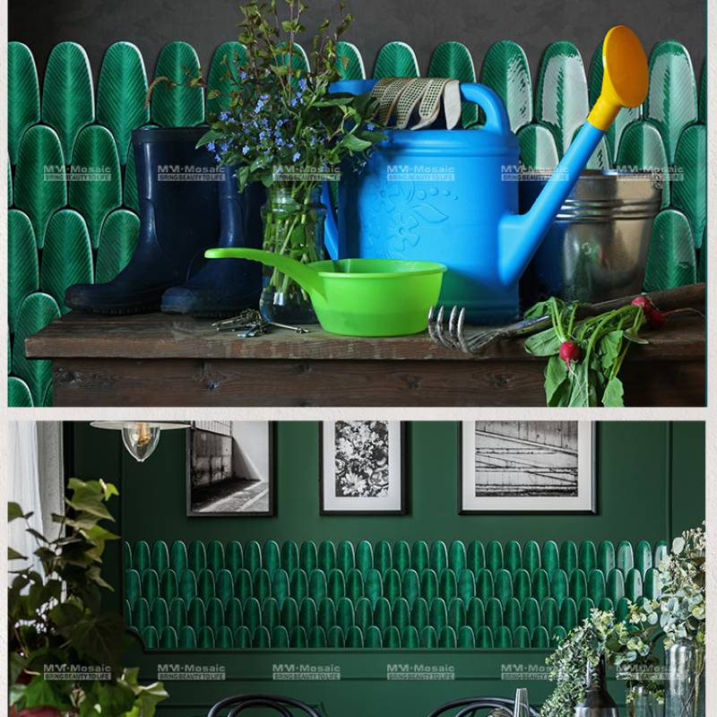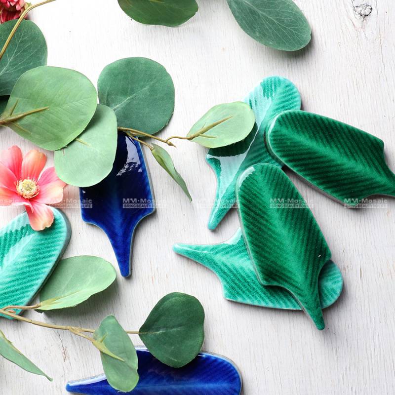 Gạch mosaic Splashback Handmade-Crackle Sứ Kéo Dài Hình Lục Giác Hình Lá ZBC5001