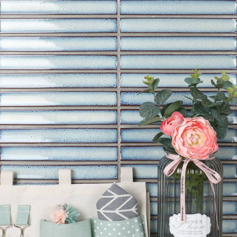 Gạch mosaic trang trí hiện đại màu xanh dương nhạt 30x145mm