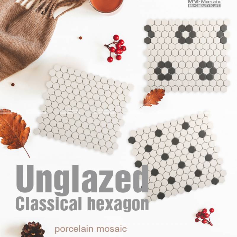 Không tráng men cổ điển Hexagon Mosaic gạch