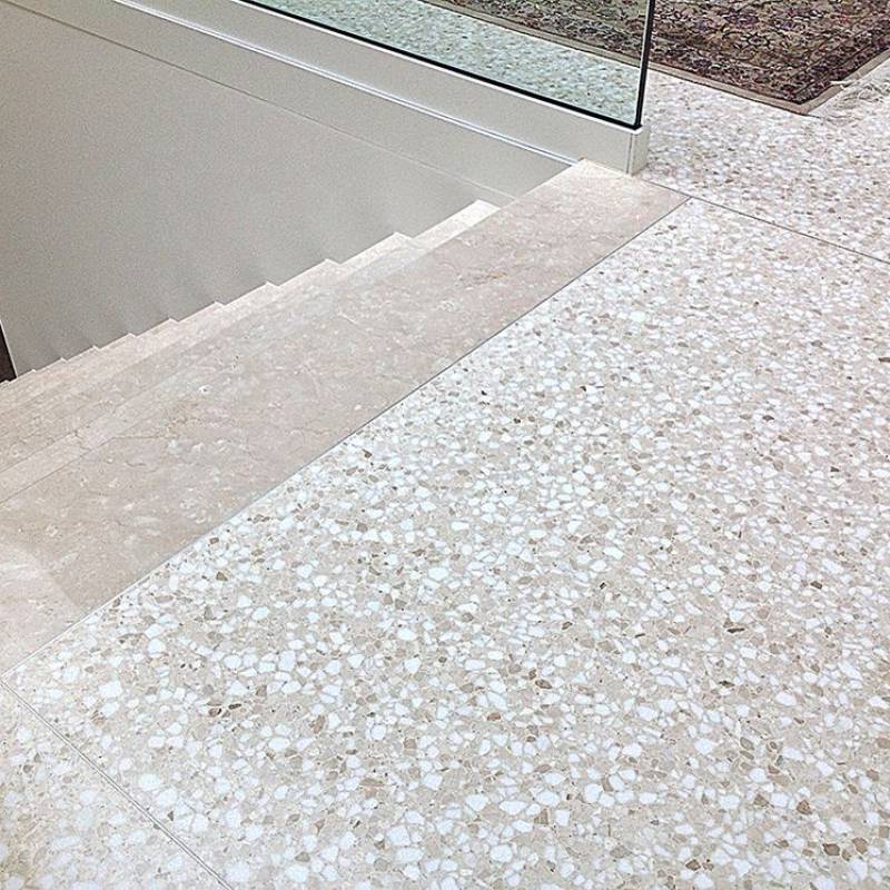 Gạch ốp lát Terrazzo kích thước 600x600mm màu xám ACC020 được sử dụng rộng rãi làm vật liệu lát nền trang trí tường và sàn như phòng khách, phòng ngủ, nhà bếp, phòng tắm, khuôn viên, trung tâm mua sắm, tàu điện ngầm, sân bay và các khu thương mại khác.