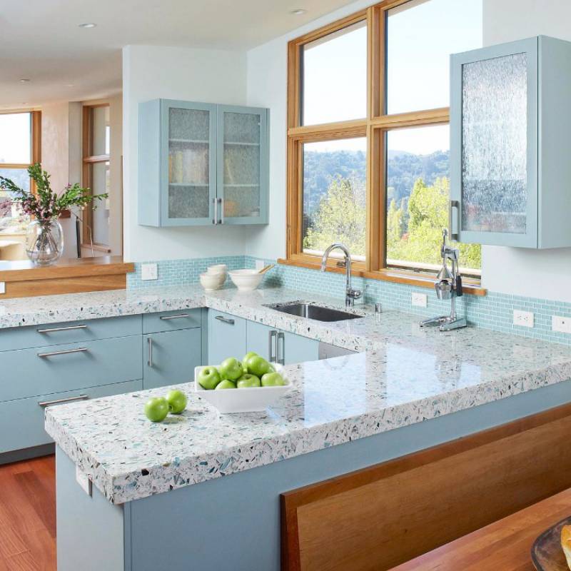 Gạch ốp lát Terrazzo kích thước 600x600mm màu xanh TTT075 được sử dụng rộng rãi làm vật liệu lát nền trang trí tường và sàn như phòng khách, phòng ngủ, nhà bếp, phòng tắm, khuôn viên, trung tâm mua sắm, tàu điện ngầm, sân bay và các khu thương mại khác.