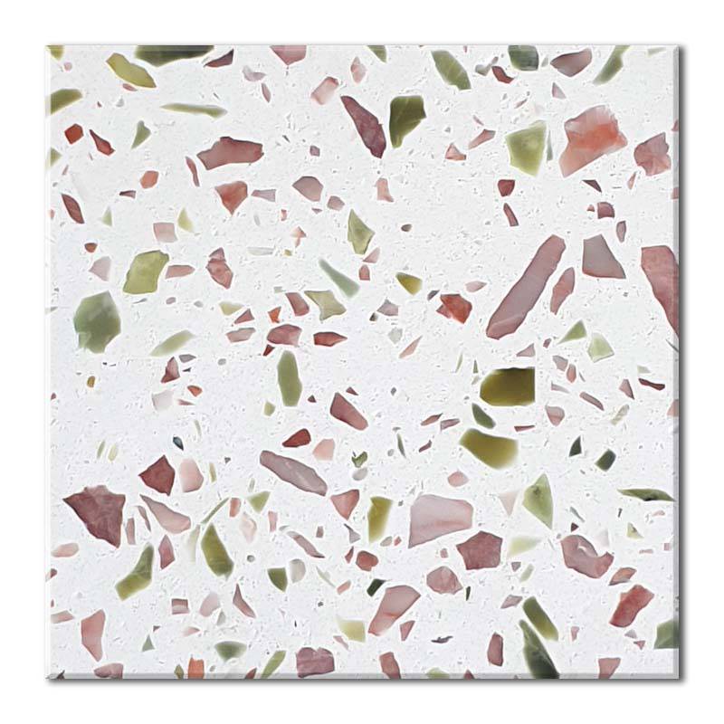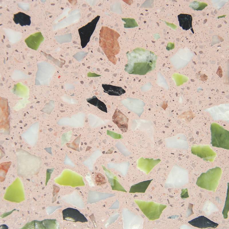 Gạch ốp lát Terrazzo kích thước 600x600xmm màu hồng được sử dụng rộng rãi làm vật liệu lát nền trang trí tường và sàn như phòng khách, phòng ngủ, nhà bếp, phòng tắm, khuôn viên, trung tâm mua sắm, tàu điện ngầm, sân bay và các khu thương mại khác.