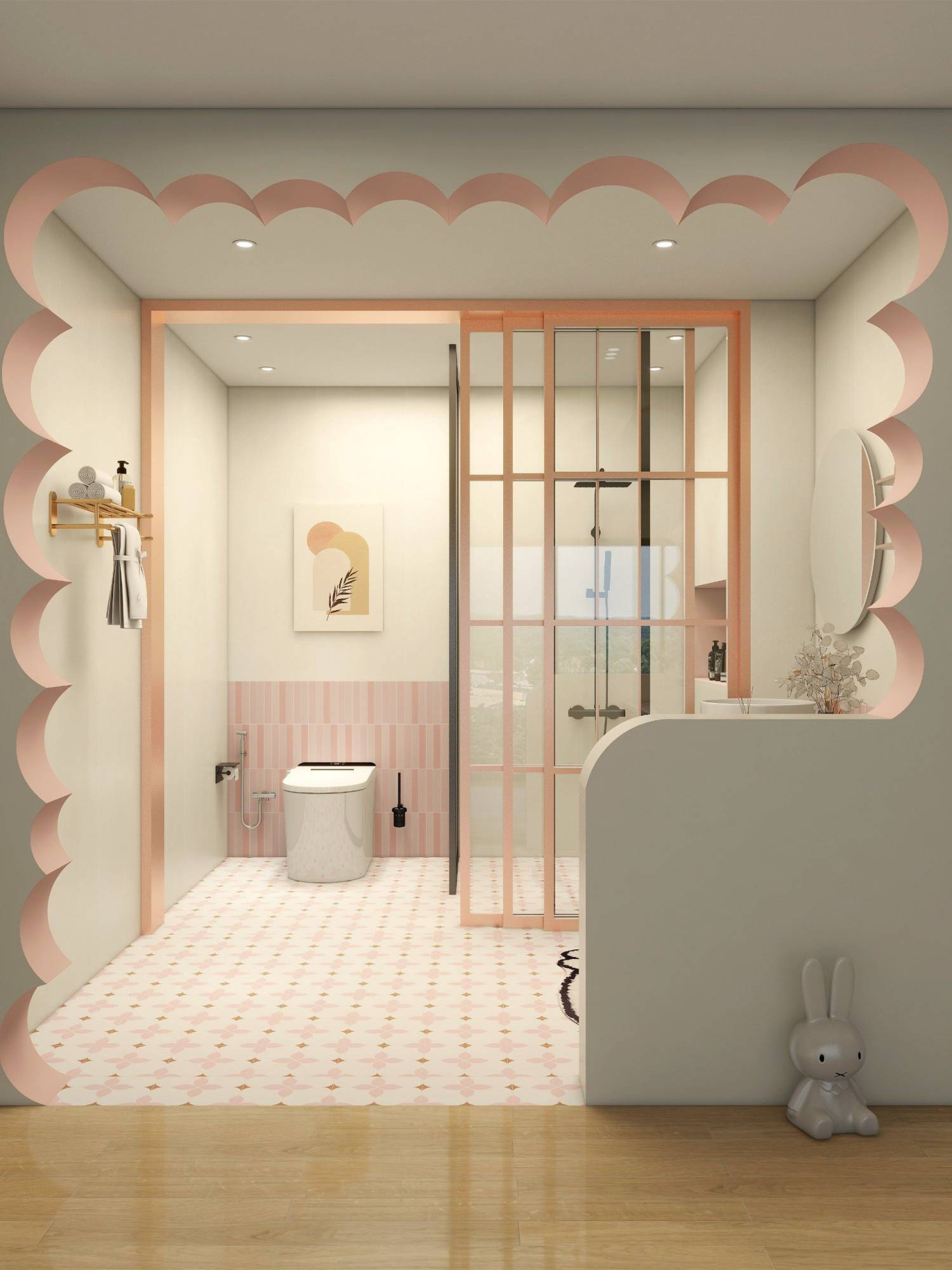 Gam màu hồng nhẹ nhàng, hiện đại cho không gian phòng tắm của gia chủ