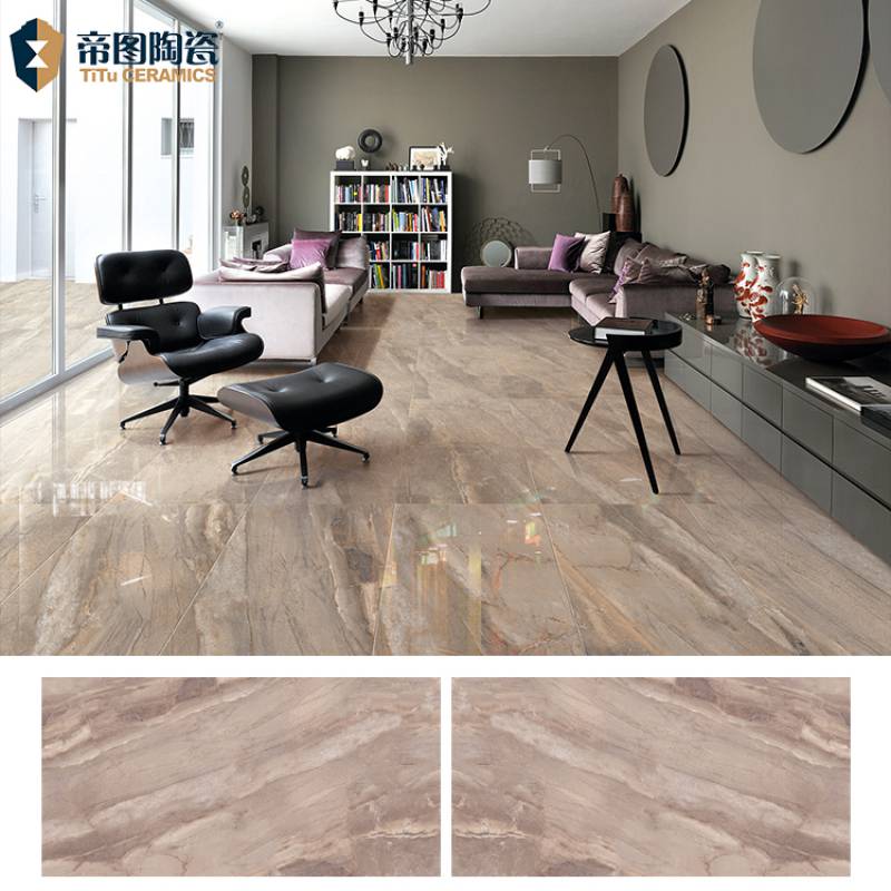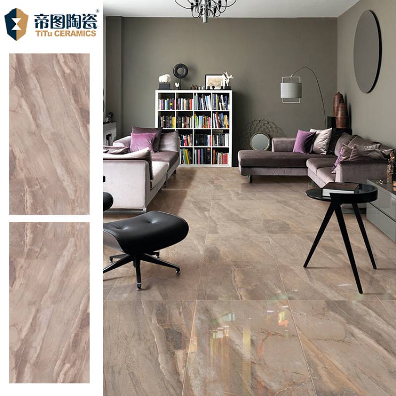 Gạch sứ lát sàn đá cẩm thạch có độ bóng cao tráng men đầy đủ đánh bóng sàn gạch cho khách 600*1200mm