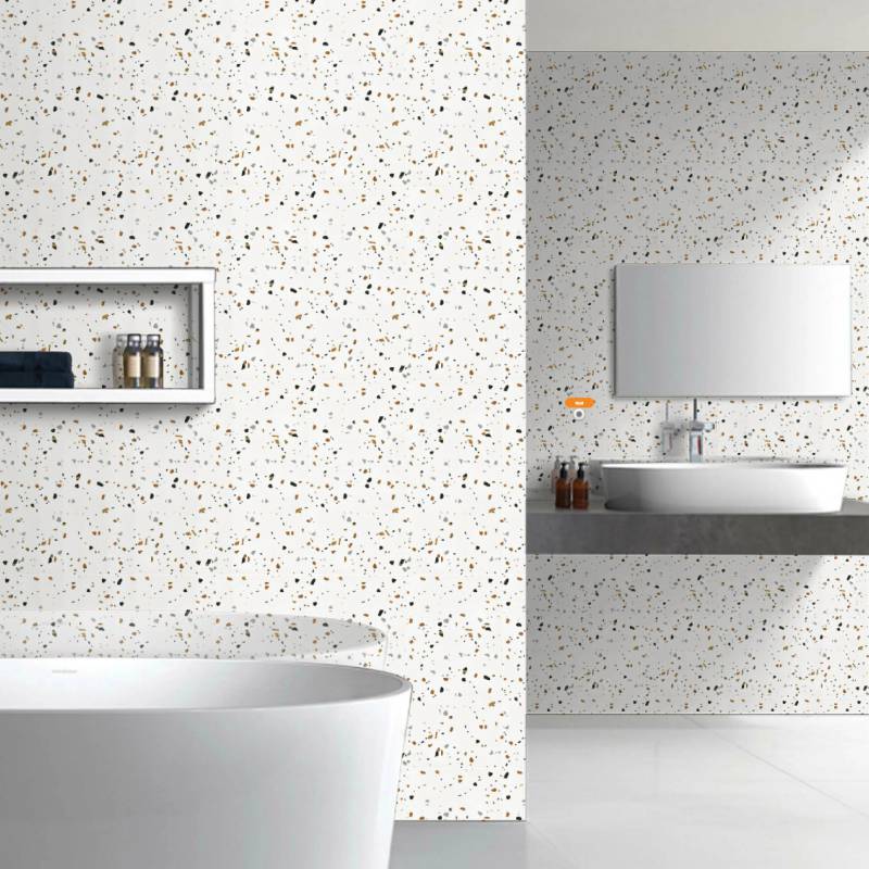 Gạch Terrazzo 300x600mm là loại gạch đang được sử dụng phổ biến trong các công trình xây dựng hiện đại. Gạch Terrazzo được làm từ chất liệu Ceramic bao gồm các hạt đá tự nhiên, xi măng và các hạt bột trang trí khác, được nén chặt và đánh bóng mặt trên.