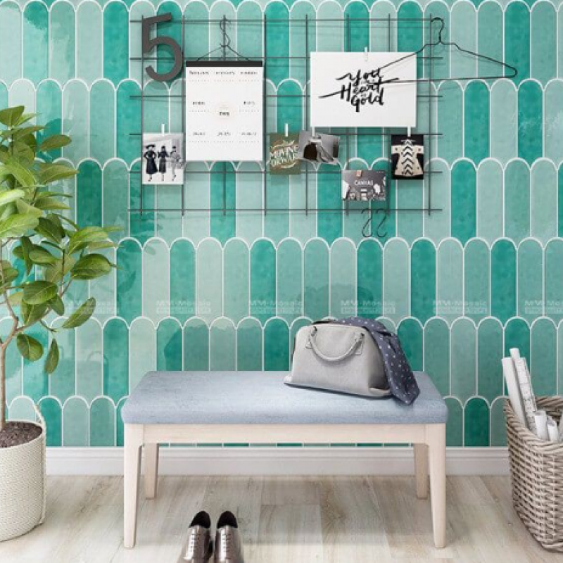 Gạch thẻ lông vũ bóng 90*300mm màu xanh lam mã L90300-02