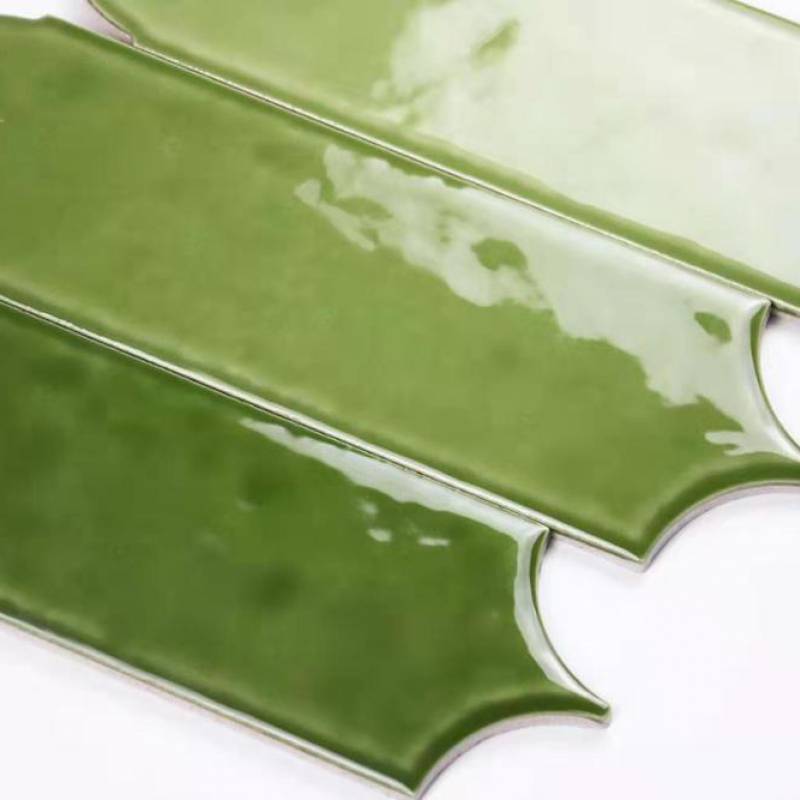 Gạch thẻ lông vũ bóng 90*300mm màu xanh matcha mã L90300-11